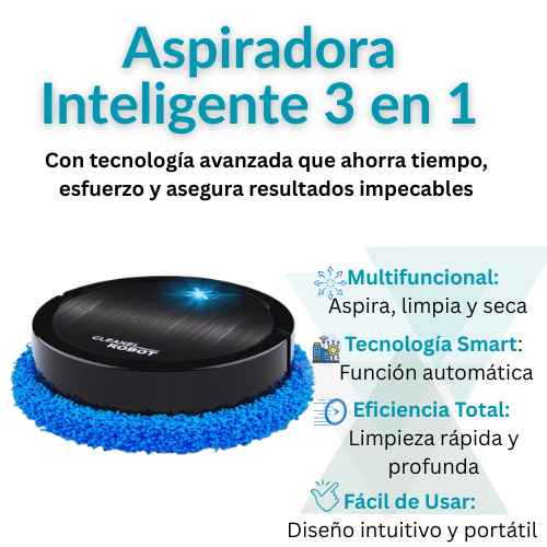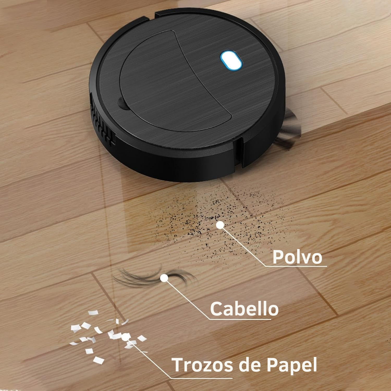 Robot Inteligente 3 en 1 que aspira, barre y trapea. Ideal para polvo, pelo de mascotas y migas en pisos duros y alfombras finas. ¡Tu aliado perfecto para mantener el hogar limpio sin esfuerzo!
